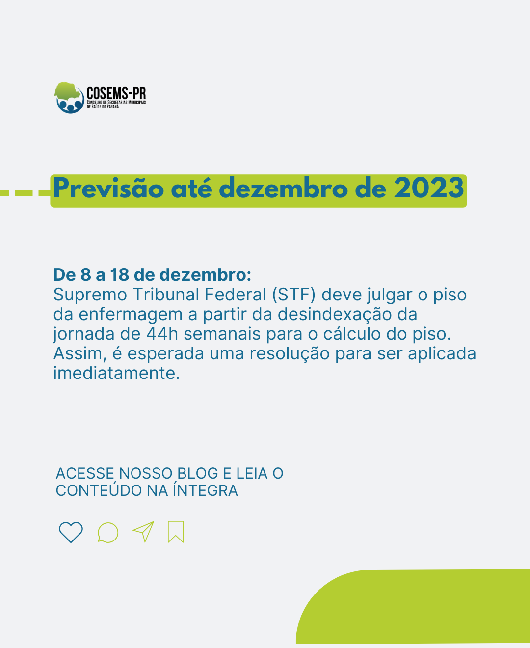 Desde o começo, o COSEMS-PR vem produzindo conteúdos no site e nas redes sociais para atualizá-los sobre as novidades em relação ao piso da enfermagem. Fique de olho no nosso Instagram e no Facebook para ficar por dentro dos próximos passos. Devemos ter um novo julgamento do STF entre 8 e 18 de dezembro.