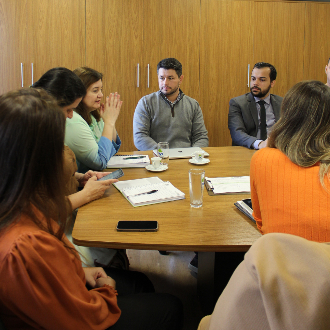 Reunião com secretaria executiva, coordenações e presidente do Cosems-PR – programação 1º Encontro da equipe em 2024; divisão de competências (coordenações e assessorias); fluxo de comunicação.